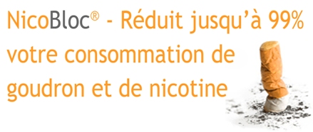 NicoBloc® est un produit qui vous aide à arrêter de fumer. Appliquée sur le filtre de votre cigarette, la solution NicoBloc® bloque jusqu’à 99 % de la nicotine et de goudron nocif que vous inhalez. Elle vous permet de diminuer progressivement l’envie de fumer afin d’arrêter de fumer plus facilement.